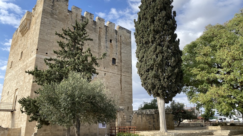 We found it! Kolossi Castle from 13th century. Amazing place, able to walk up the spiral stairs to the 4th floor with a good view and a feeling of impregnability. The picture shows four trees which are in front of it. There is a delightful coffee shop nearby. Many thanks to Cyprus for all the free admissions we have been allowed due to our good looks.
