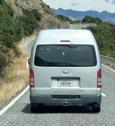 Along the very wonderful lakeside road we followed Gollum. Yes we did. Car plates here are anything you like.
