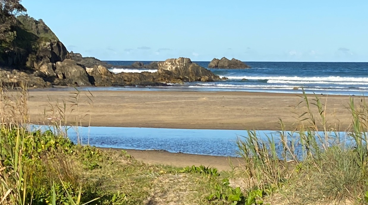 Once I had jiggled Mozzy out of the deep gravel I had parked on we loaded Scott and Virgil onboard and set off on a short journey to Coffs Harbour. But we did break the journey at Nambucca Heads, a remarkably picturesque river and sea situation with a very large all day breakfast we shared. Fennel seeds being the secret ingredient in the chutney.