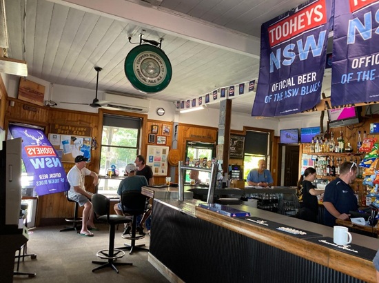 Up with the lark again ready for our road trip, starting back to the Italian shop for more curry kits, so good was the one last night. Our first stop was the iconic Brushgrove Hotel. This building remains unchanged since 1868. It is situated on an island of about 8o sq kms at the apex where the Clarence river splits with the Southern Branch. A bridge leads straight to it. The only other bridge is at the other end of the island. Inside the bar, 10:30 the beer is flowing and the racing is on the big screen. A machine in the corner takes bets on the racing. There is a large semi open restaurant area indicating sometimes they could be busy. The food is recommended. Outside the garden area leads down to the jetty.
