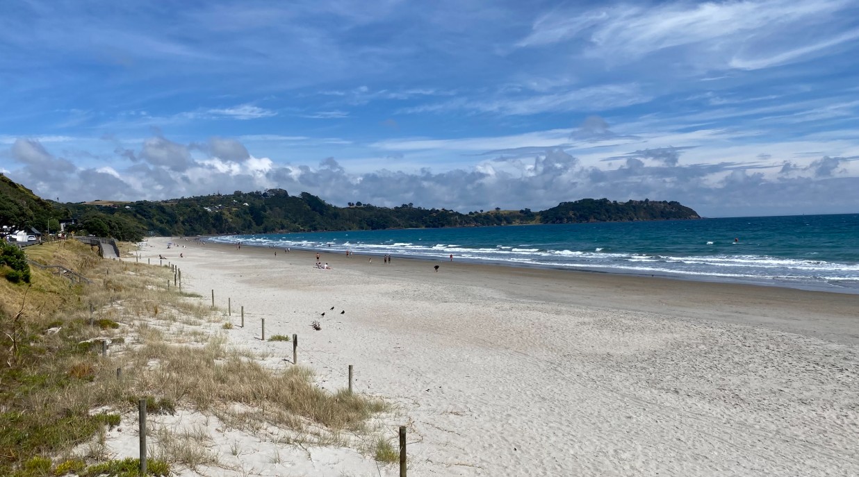 Our bus turns around at Onetangi on the North coast. Here there is a long beach and it is being used by a lot of Kiwis who have come here for their Saturday of this long weekend. Monday is Auckland's 'Regional Anniversary Day'.