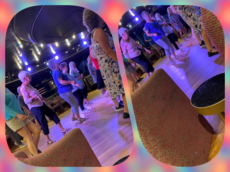Sunrise position check N17 W74. You can see we are crossing the Zuiderdam's path from its previous voyage on 20th January. We wave goodbye to our close companion, 'Carnival Horizon', as it turns Southeast for the next four days visiting Aruba, Bonaire and Curacao in quick succession. Meanwhile after breakfast daily Tai Chi.