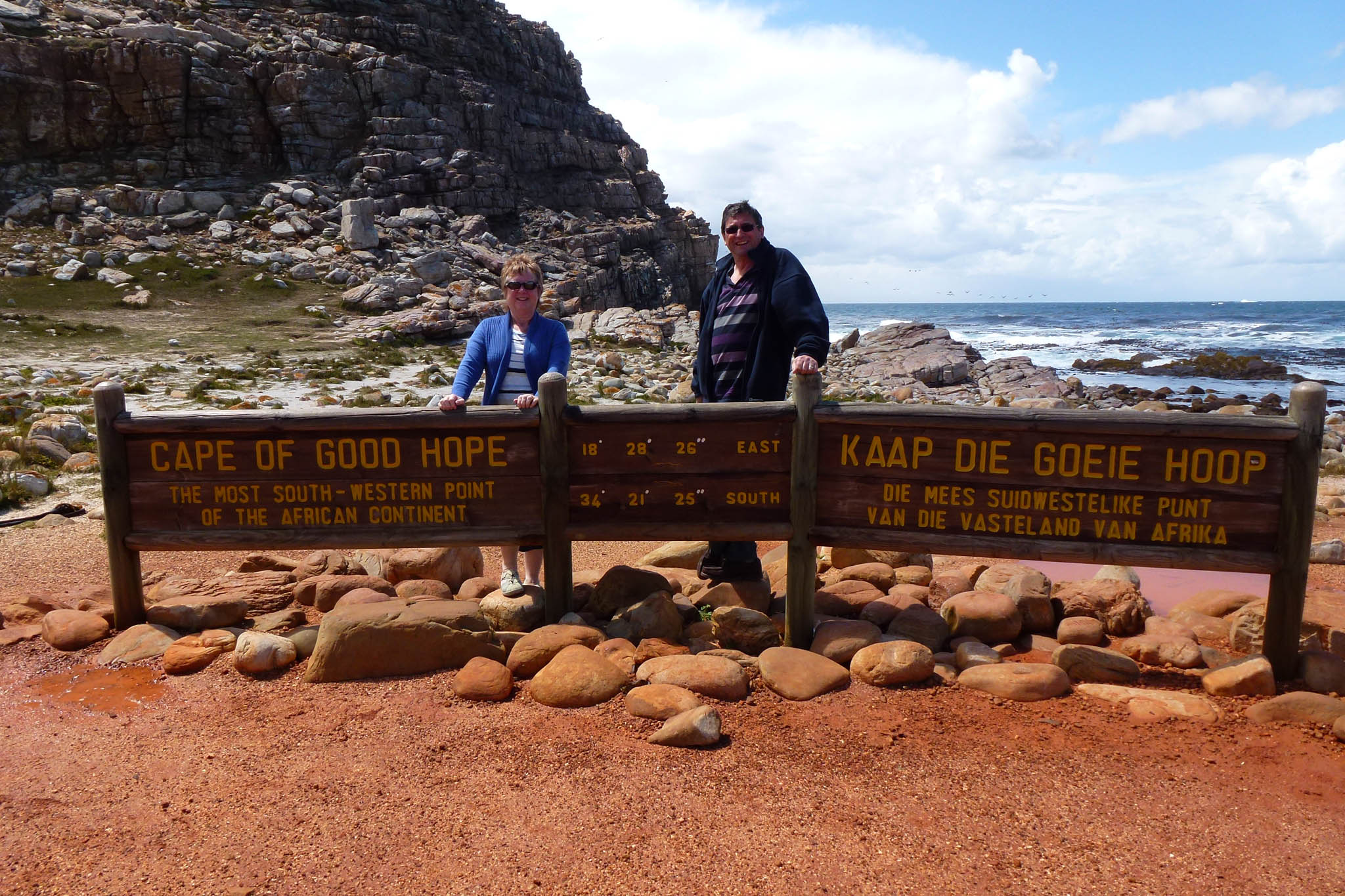now becoming a reality. This is the furthest South West point of Africa. And so for the purist geographers NOT the point where the Indian Ocean meets the Atlantic. In fact, the southernmost point is Cape Agulhas, about 150 kilometres to the east-southeast. The Atlantic and Indian oceans meet at the point where the warm-water Agulhas current meets the cold water Benguela current and turns back on itself – a point that fluctuates between Cape Agulhas and Cape Point. However, the Cape of Good Hope marks the point where a ship begins to travel more eastward than southward.