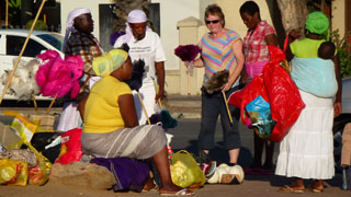 The top has been closed for several days but is now open, however this means the queues are very long. They are also added to by the exciting news that on 11/11/11 the mountain was voted into the SevenNaturalWonders of the world. Our Guide is John Finch who circumnavigates the queue problem quickly. Up we go and we spend a long time in the Sun shine admiring the wonderful views. But we are about to learn something about Cape Town and why it is also known as the Cape of Storms. Within minutes a cloud rolls in completely obscuring the views and making the temperature drop. Everyone heads for the cable car down. Those just arriving after hours of waiting are disappointed. (Thankfully, for them, it cleared ten minutes later as quickly as it came).