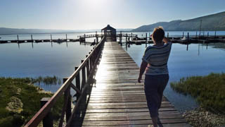 Evening meal at the waterfront with some fellow travellers. The sky is clear and we may see some of the Southern stars for the first time.