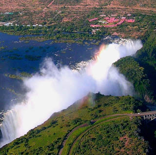 We were expecting to be disappointed at the lack of water for our visit to Victoria Falls. At the maximum of 10^6 Cubic litres per second (Enough water to keep Australia going for a year falls down in two days) they look like this: