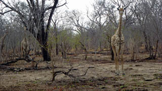 We explore for a couple of hours without seeing another safari party. Towards Sunset we park up on the river and another four safaris join us for drinks. Then as the light is fading word is out and we rush off as one to spot a Loepard. It is a young male, quite pale and white, we only get a fleeting glimpse as he runs acrfoss the bush but it was from very close quarters. But we have tarried too long and now Nick must put his foot down to avoid a fine at the exit.