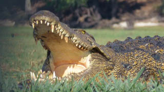 After lunch we transfer to a boat which proves to be very exciting. A Hippo chases us and we get very close to a big Croc.
