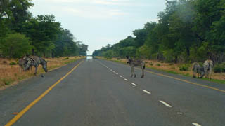 We leave Chobe early our trip to the airport should take 50 minutes. We spend half of this time on the the amazing A33 dead straight through the park for 60Km. We have to slow down for the Zebra crossing...