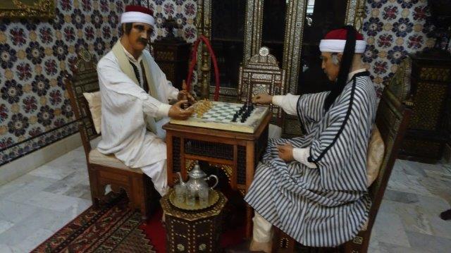 Overnight at the Tunisian 4-star Melia Mouradi Douz, the ancient centre of the nomadic desert culture. Here the inhabitants' names reflect and indicate their tribal background. Each nomadic tribe in the Southern desert would have an individual facial tattoo.