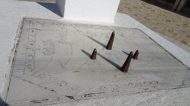 There is a Sundial in the courtyard of an unusual design. Presumably this is calibrated to provide times for the standard calls to prayer. This was taken at 11:33 on 10th Feb 2020