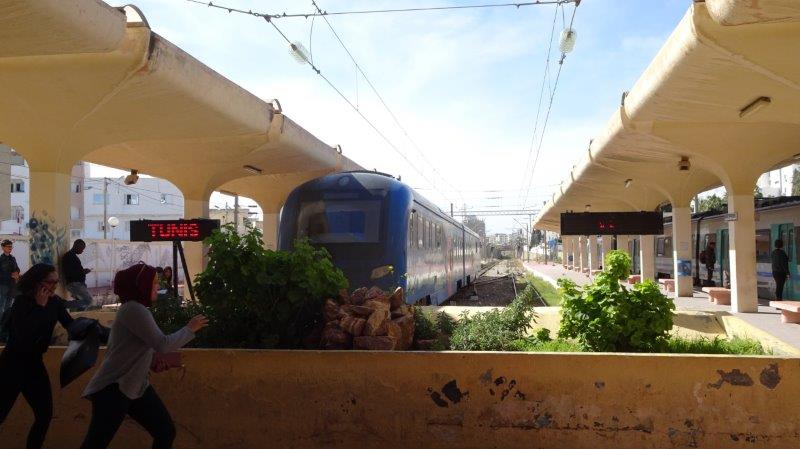The 10:30 from Sousse to Monastire left on time. Seven stops and half an hour it arrives spot on time. Return fare 50p. It is quite full. We pass by salt production lakes, university, an airport and many hotels which must be all inclusive as they are miles from anywhere.