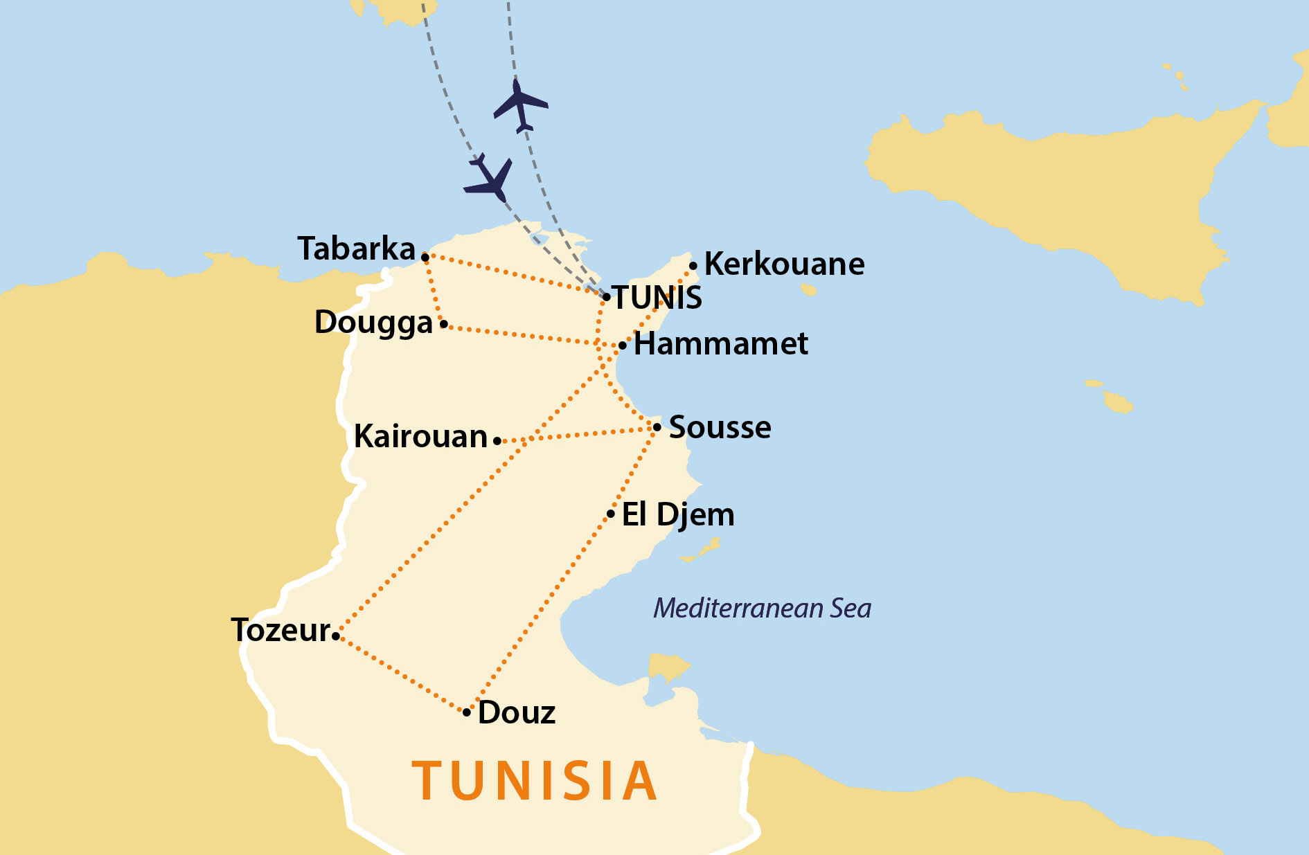 We arrive independently one day early, flying with TUI from Manchester to Enfidha Hammamet, for this VJV Tour.