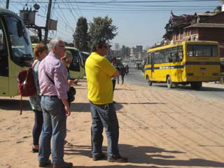 Our bus takes us through the city as it wakes up. The residents are proud of their homes and like to keep them clean so they throw their rubbish out of the windows at night and the government men clear up what remains early in the morning. An early start for a flight over the Himalayas and a view of Mount Everest.