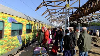 Early morning train to Chandigarh. The city is dark, the traffic still hooting horns at 04:30. The station is alive. Queues everywhere and our guide bartering with the porters which we do need. The platform is half a mile long, we need to be at the far end. Eventually the carriage is unlocked for us, we are far too early but settle down. It fills up and we leave still in the pitch darkness. Nothing to see. If you do drift off you are awoken by the tea boy every ten minutes shouting 'chai chai chai chai chai'. So probably not one of the great railway journeys in the World. But an experience and needed to be done.