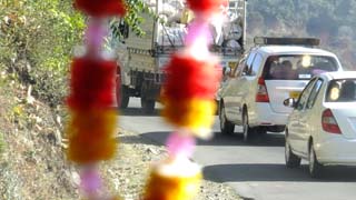 Then by road to Shimla on the Himalayas Express way. Snaking and climbing the views are amazing. We start to come across buildings at the side of the road. These are made from a level platform straight out over the sheer drop, then extended downwards two or three floors until some firm ground is met. As we climb the air thins and then larger groups of these constructions come into view. Our hotel being one of them.