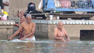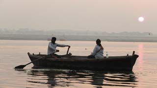 The true scale of the polution becomes apparent in the light of day. As we row along the Ghats asking the occasional question we see many rituals of complete submersion followed by half a pint of the grey water.