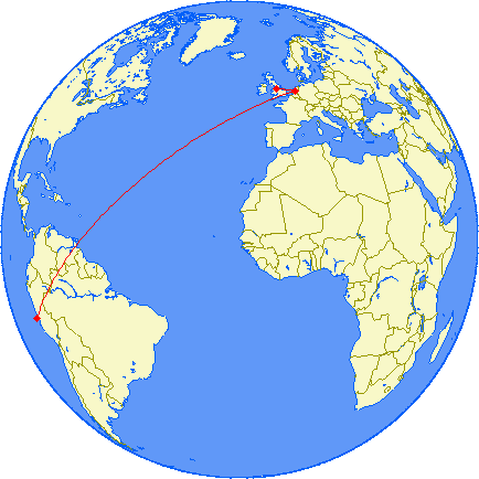 6am take off from Manchester to Amsterdam then a short wait for our flight to Lima. There was plenty of entertainment on board and for some reason we were given seats with nobody in front of us.