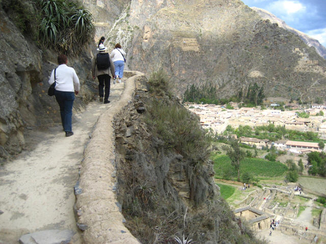 We passed into the Eastern side of Peru where all rivers flow towards the Atlantic. Lunch was a buffet at a smart hotel in a small town and then we continued through the wonderful scenery towards Ollantaytambo, a small town built around a superbly preserved Inca fortress. The fortress guarded the entrance to this part of the valley and protected it from possible invasion from the lower jungles. The central part of the ruins is the Intihuatana group of temples and rock outcrops which reveal the most magnificent Inca masonry. The design and foundations of the majority of the buildings in the town also date from the Inca era, when Ollantaytambo was a strategic military, religious and agricultural centre.