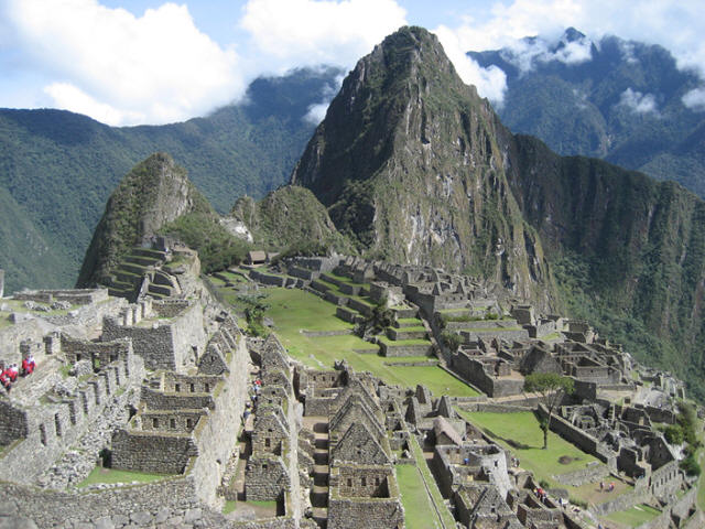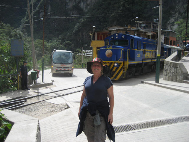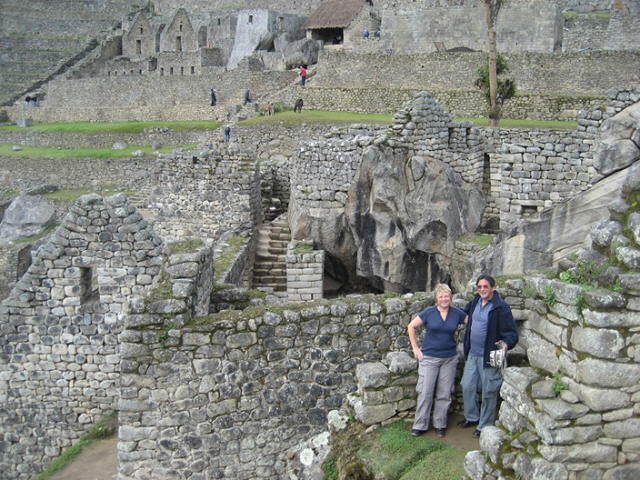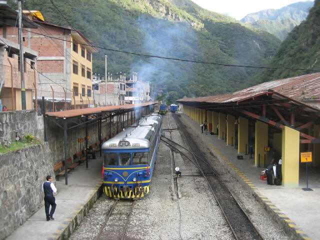We took the train from Cuzco to Agua Caliente. The train leaves the natural bowl of Cuzco by a series of switchbacks and then descends towards our destination through the cloud forest heading North into the jungle. Agua Caliente is a charming town with a hippy village feel totally geared up to processing visitors to Machu Picchu. On arrival the next phase is to take one of the twenty coaches which go up and down to the mountain from 05:30 to dusk. It is a 30 minute journey with the usual sheer drops and hairpin bends. Backing up to let other coaches past on the narrow road adds to the fun.