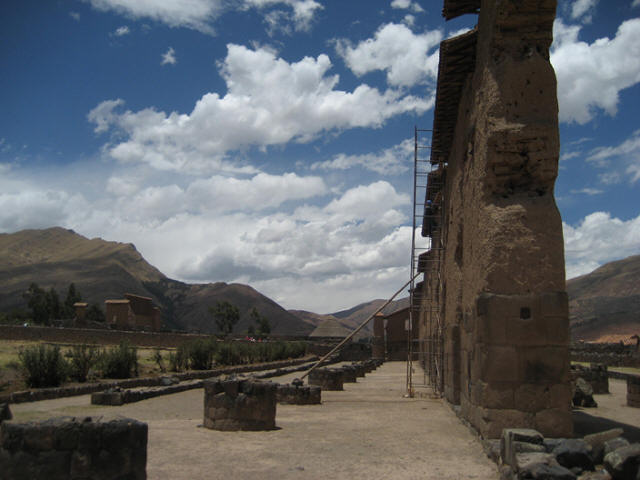 Cuzco to Puno is 5 hours by road but we stop at some places of interest making it 10 hours. The first half of the journey passes through the gentler, rolling Andean Plains, where vicuna and alpaca may be seen and follows in the footsteps of the Incas to the shores of Lake Titicaca. We stop on the way at Chokepukio and Pikillactat, ruins built by the Huari people between 600 and 800 AD. One of the many storehouses has been restored and we go inside to be amazed at how cool it is, despite the blazing noon Sun outside.