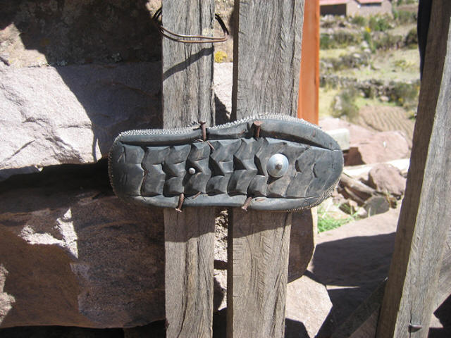 The rubber soles of broken sandals are reused as gate hinges. When they wear out they are then used as wedges.