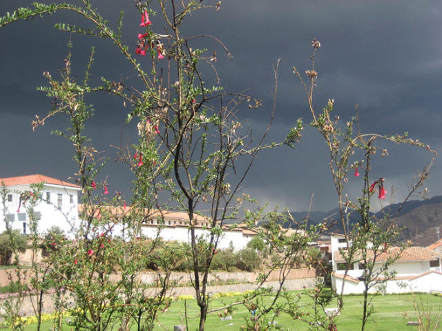 Our tour begins at Qorikancha the Inca temple of the Sun extensively built over in the 17th century by Spain. As we enter the buildings the impending thunder and hail storm arrives and drenches the city. Our guide seems to take it in his stride but we rush over to the balcony, oblivious to the historical treats, to watch the weather.