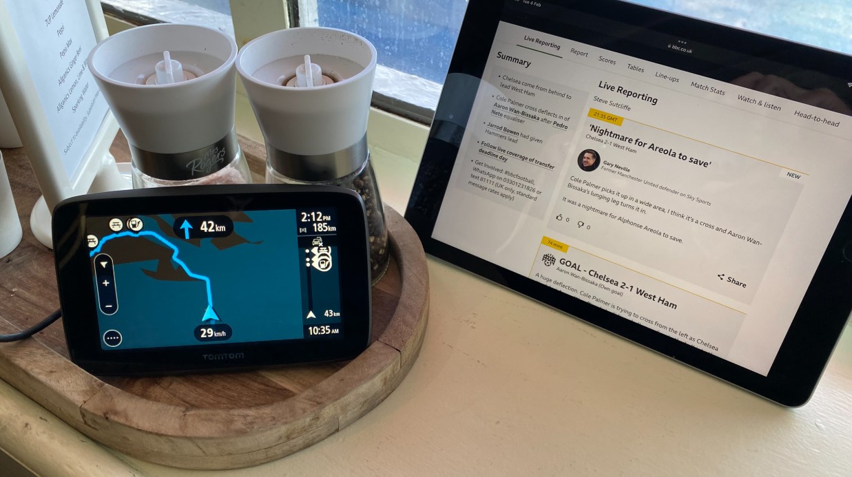 Passing the time on the ferry by getting this page ready. The TomTom showing we have 42 Km to go at 23KPH, however our route takes us into Picton through narrows, we may have to slow down. It is a big ferry, many large lorries on board and countless cars and motorbikes. A few camplingers as well. They have to park in the frorealm.