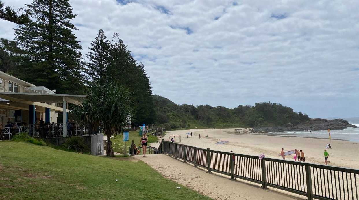 Later, at Flynn beach, just the opposite from a super restaurant on this lovely beach in Port Macquarie. We want to go back for lunch tomorrow and a swim. From there we drove 27km to our new home, 'The Farmhouse' which is very much in the middle of nowhere. Although there are other people here they are dotted around in wooden buildings and all presumably using the same brown water we have on tap. Yes, it is a bit odd. There is a jug of it thoughtfully provided for us in the fridge. The 38 degree water in the hot tub, is oddly not brown. We have a great wide screen tv, Netflix, Iplayer, Youtube et al, but also brown water, no explanation. The nearest town, in the other direction is also 37 km away , at 110KPH mind you.