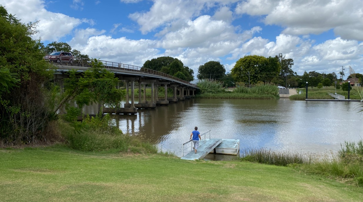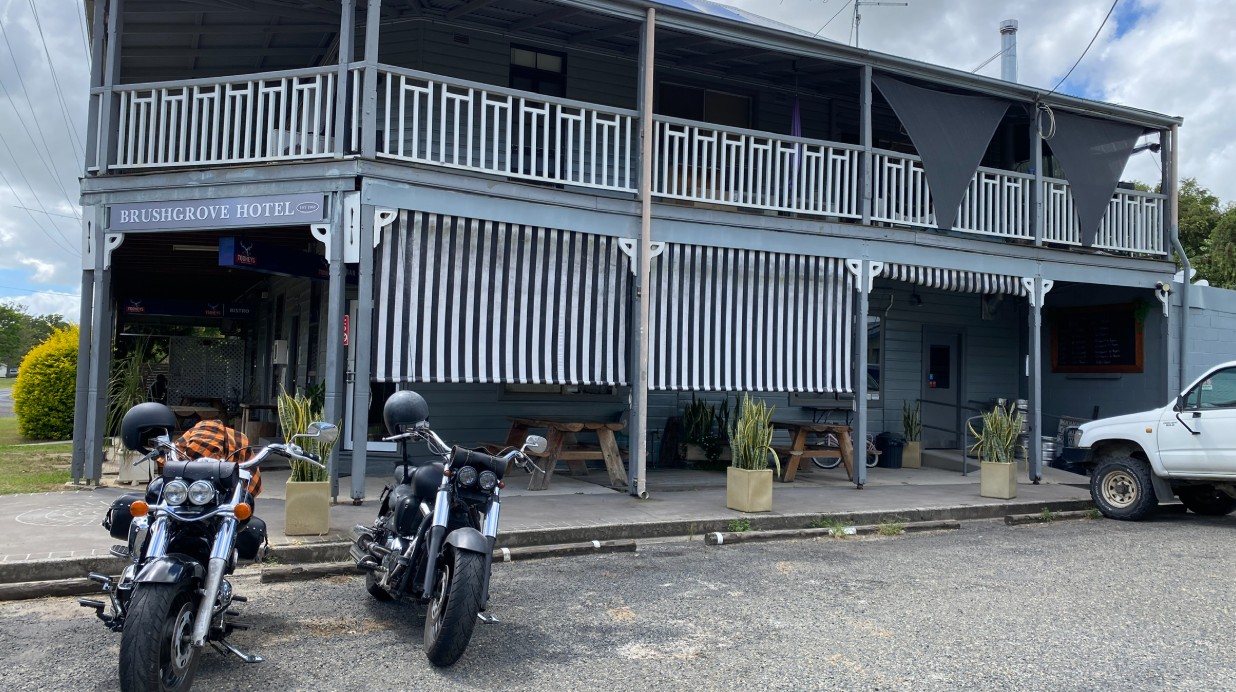 Up with the lark again ready for our road trip, starting back to the Italian shop for more curry kits, so good was the one last night. Our first stop was the iconic Brushgrove Hotel. This building remains unchanged since 1868. It is situated on an island of about 8o sq kms at the apex where the Clarence river splits with the Southern Branch. A bridge leads straight to it. The only other bridge is at the other end of the island. Inside the bar, 10:30 the beer is flowing and the racing is on the big screen. A machine in the corner takes bets on the racing. There is a large semi open restaurant area indicating sometimes they could be busy. The food is recommended. Outside the garden area leads down to the jetty.