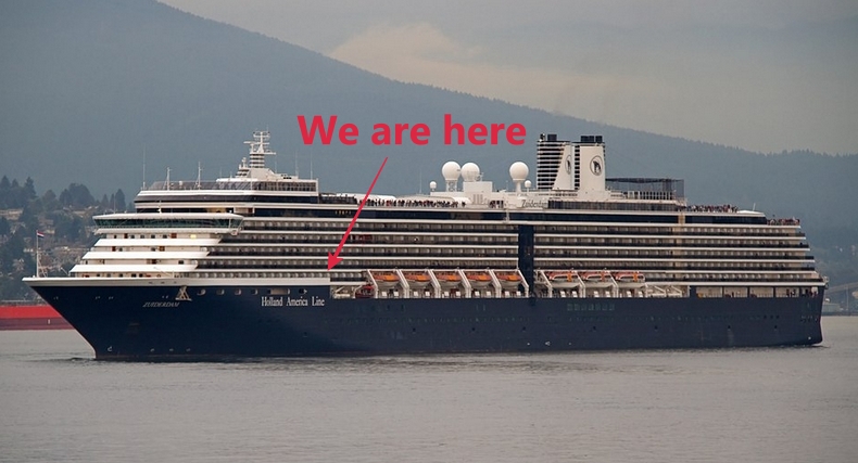It is wonderful to unpack and to have a base for the next two weeks. For noobs like me, it is a steep learning curve to find the hacks. Thanks to James and Ollie for advice before we left. Other seasoned voyagers are pleased to share too. Failing that, the technology aboard works like a charm. It covers information for everything. One of the best is the carpet in the lift which simply says 'Sunday'.