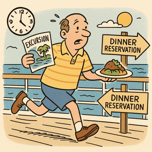 What emerged was a rhythm unlike life on land: A blend of freedom and structure, drifting and dashing, lingering and hurrying. A day could begin with a lazy coffee and end with a mad dash to make curtain time. It wasn’t stressful at all but it wasn’t the timeless float I had imagined either. It was something more interesting: a life where relaxation and routine danced together, each shaping the other.