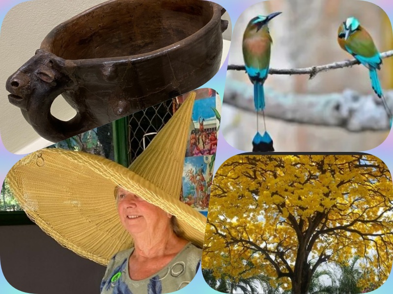 Yet amid all this tectonic motion, the national bird, the turquoise browed Motmot, seemed a perfect emblem: vivid, balanced, and loyal to its pair. The road cuts through semi-tamed jungle with many different trees, some are stunningly coloured.