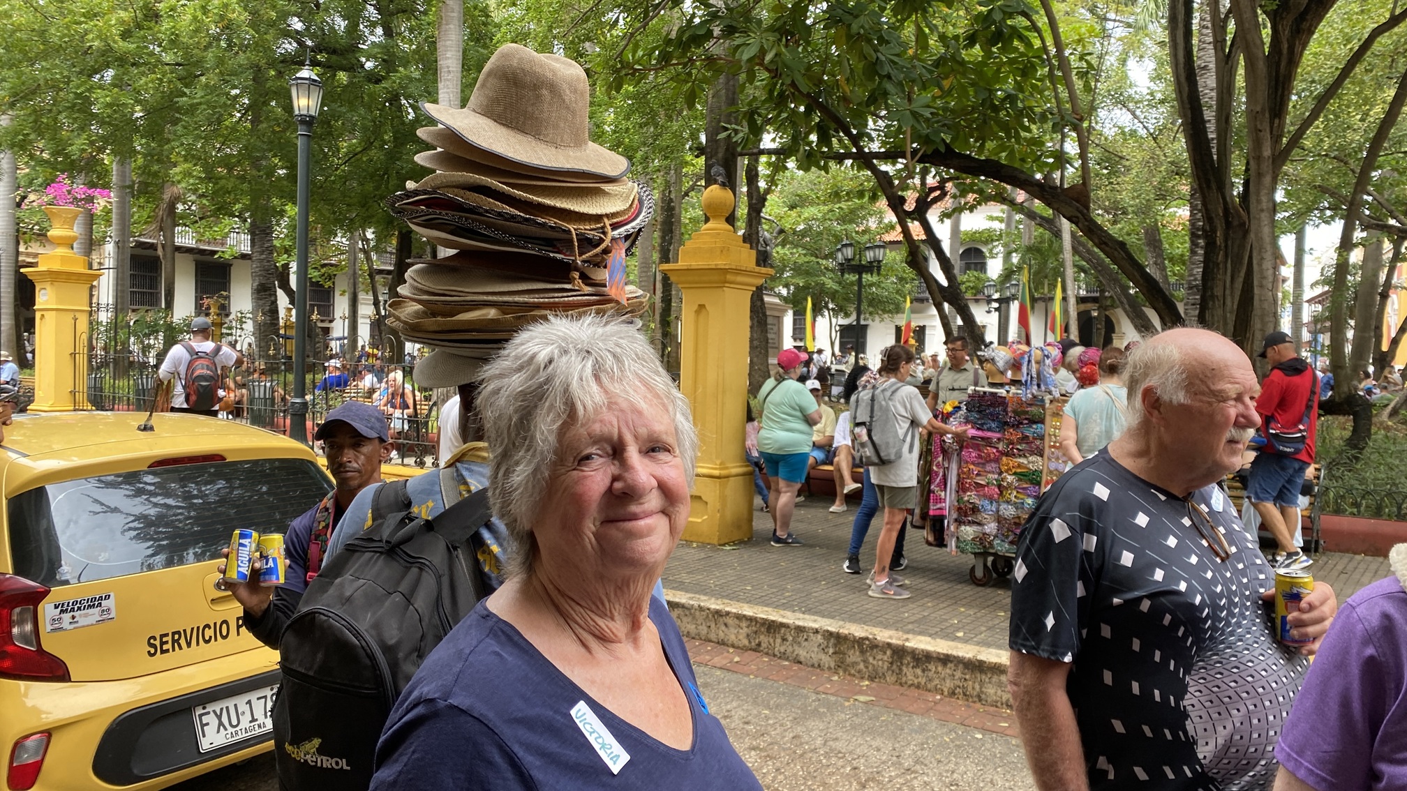 There was no litter at all in this city, those two cups were our coffees, set down for a moment. Liz negotiated a hard deal on a new Croquet hat for me. Everything was clean and the people fun to be with.