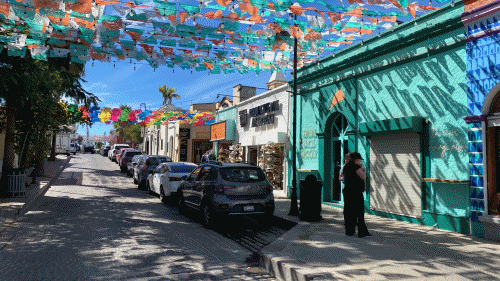 Wonderful trip today starting with a tender ashore and a forty minute coach ride on Highway 1 which gets us out of the pulsating port area into a magical artisan town named San Jose Del Cabo. We visited several galleries. Large sculptures are for sale at between $6k and $12k and frankly they would grace any home with the colours. Smaller pieces are also available. Then there are paintings and other wall hangings in different materials. All vibrant.